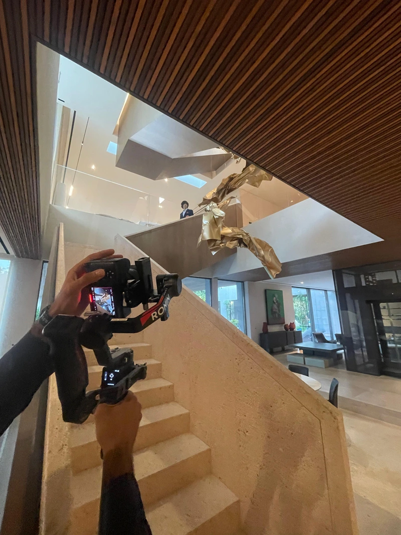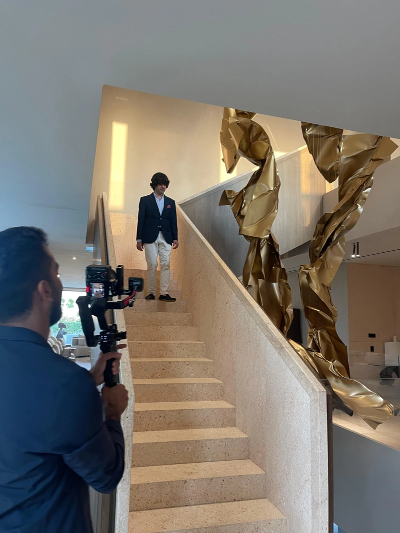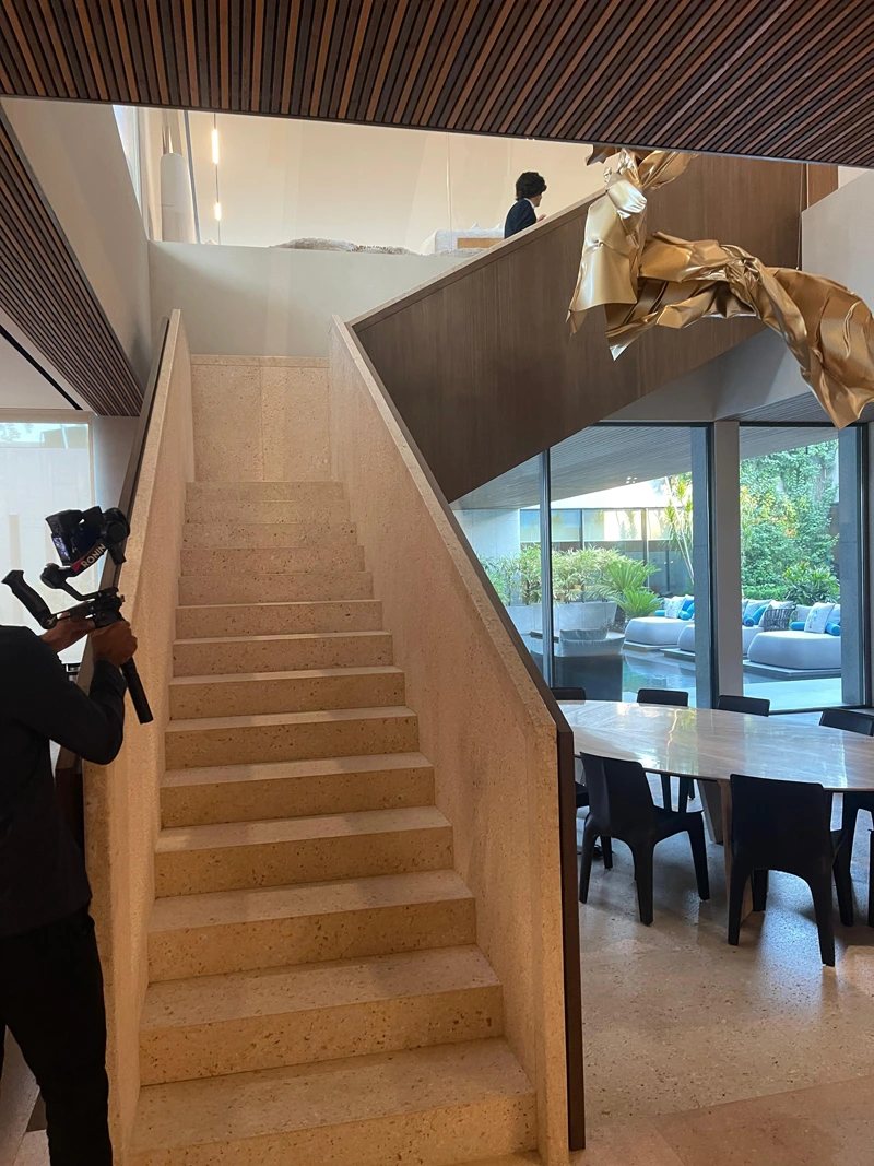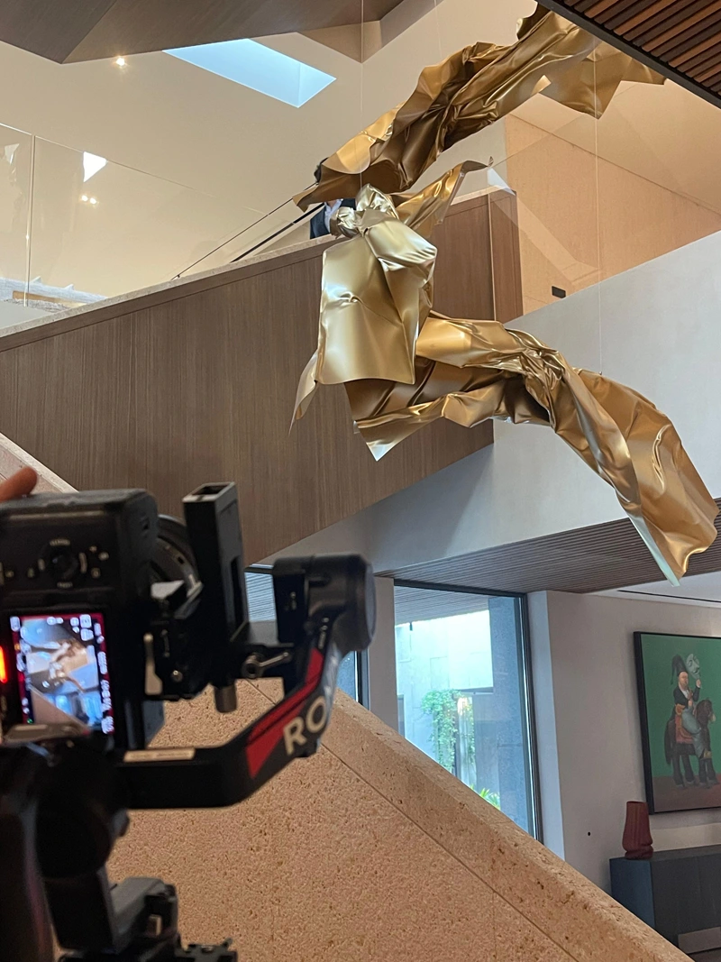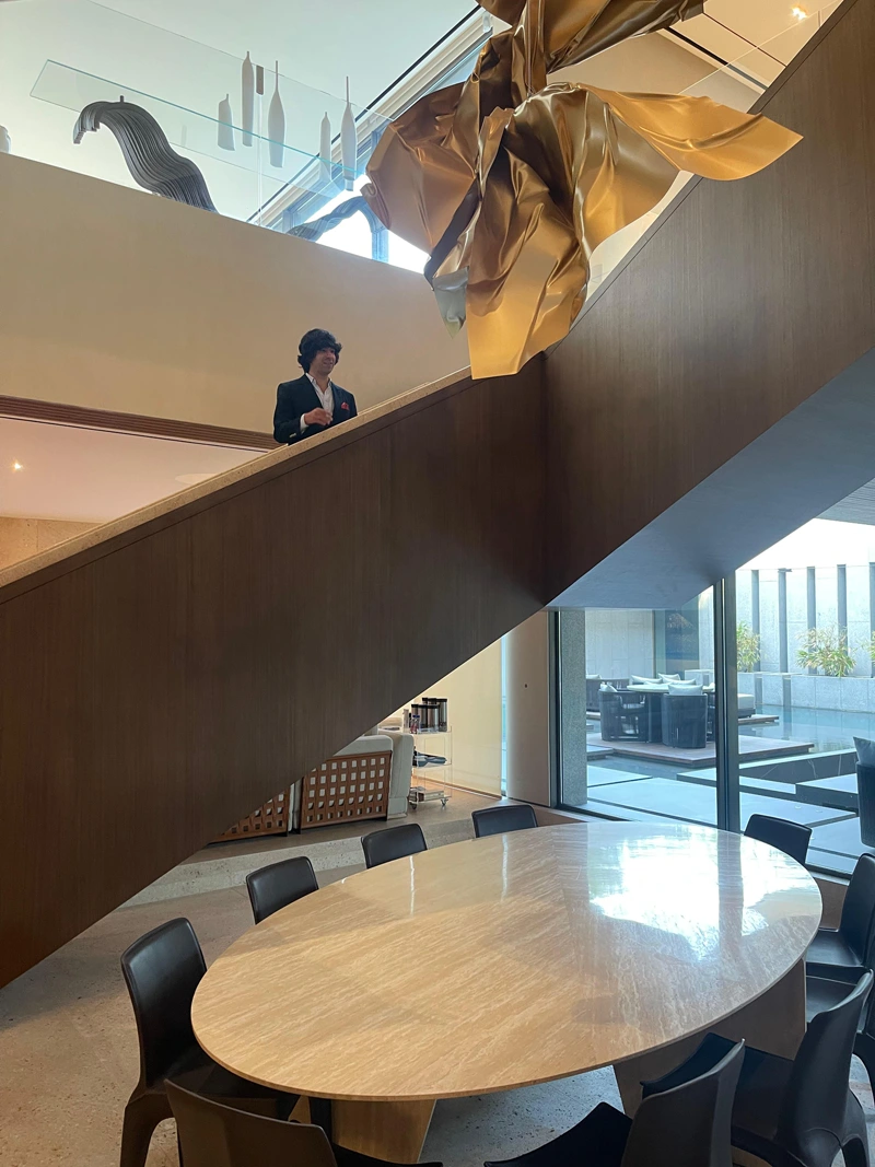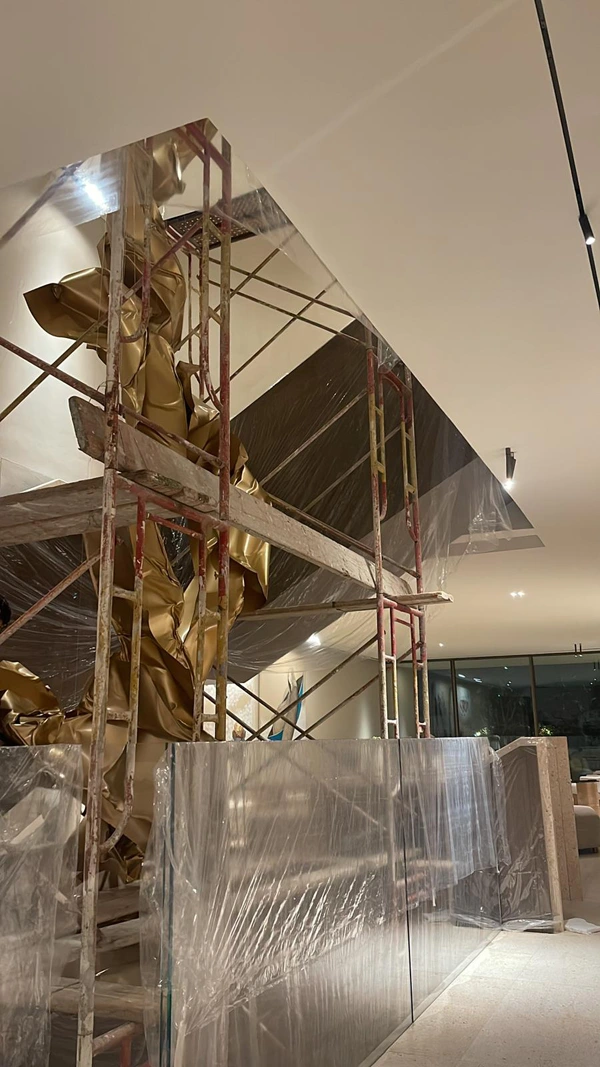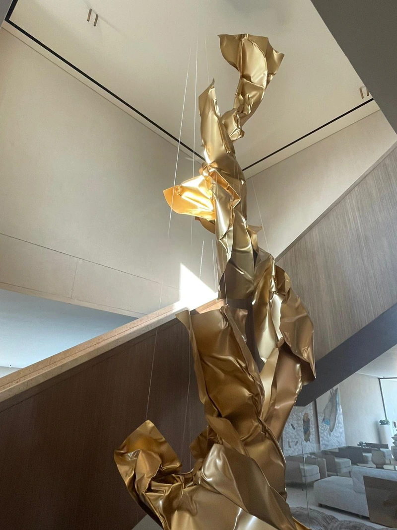 The sculpture is designed to reach a height of up to 11 meters, forming a spiraling composition that integrates with the surrounding architectural space. Positioned at the center of the villa’s staircase, it flows alongside the movement of ascent and descent, as if the work is interacting with the space and the movement of visitors around it.
