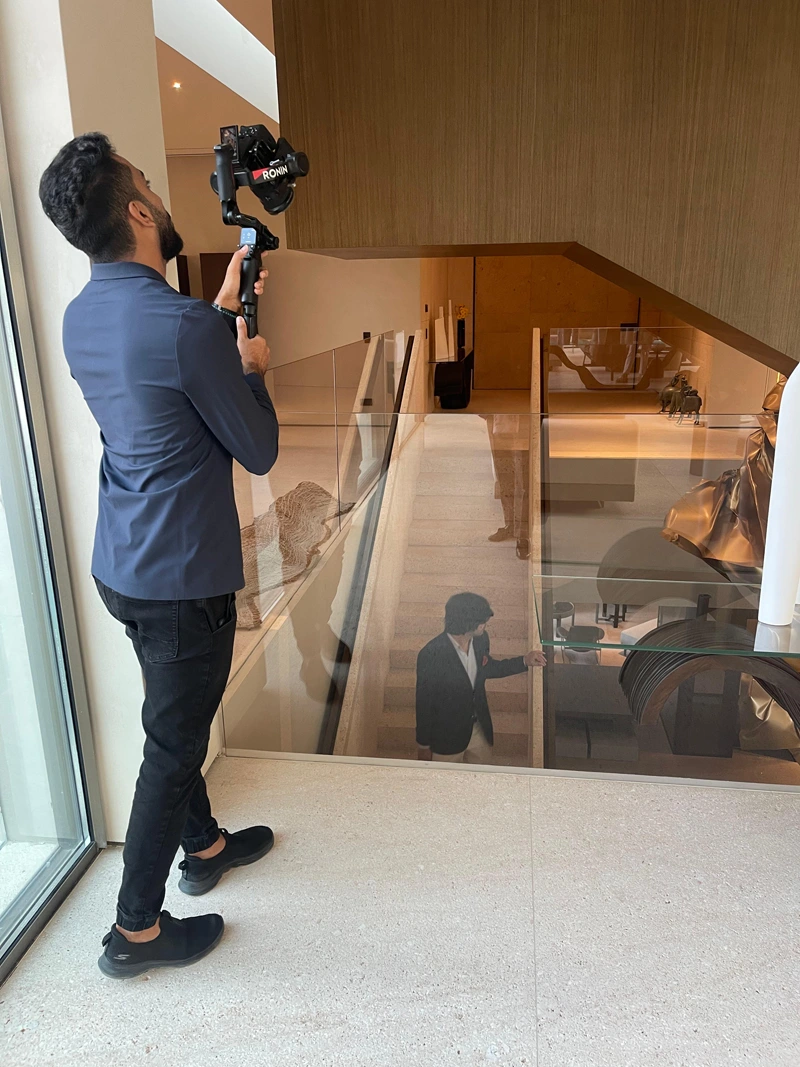 With its striking vertical presence, the sculpture becomes a visual focal point within the villa’s interior, where art and architecture converge in a composition that embodies connection and continuity, while introducing a contemporary artistic dimension that reflects both elegance and motion.